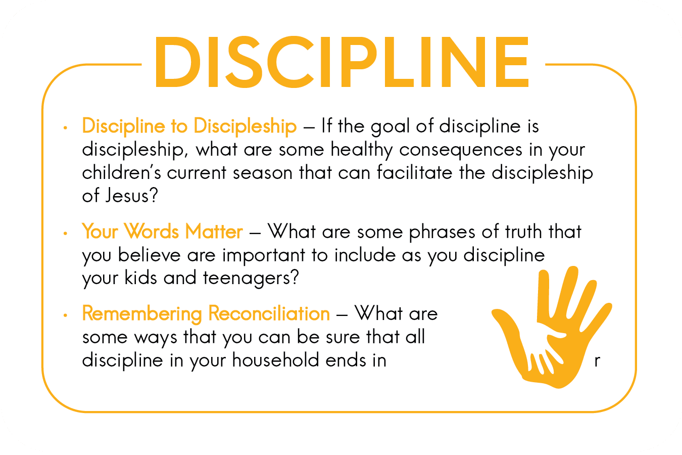 Parenting happens in habits. Our daily routines, like mealtime, work, play, and bedtime, play an integral part in the spiritual formation of our kids and teenagers, but are we intentional in the ways we practice these routines? Through this series we hope to show how these ordinary routines are actually extraordinary opportunities to participate in God’s story of love in our homes everyday. As we establish new habits and intentional rhythms around ordinary routines, we believe that our homes can become a safe place for our families to practice the ways of Jesus together.